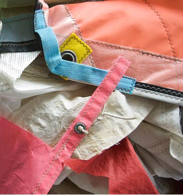 Navigateurs chevronnés ou plaisanciers passionnés nous apportent leurs gréements. Spinnaker, grand voile, foc, génois, toutes les voiles de bateau sont recyclables. Depuis 2008, BO Carré les transforme en accessoire de décoration ou du quotidien : cabas, pochette, sac…Toutes les voiles de bateau récupérées ont navigué.