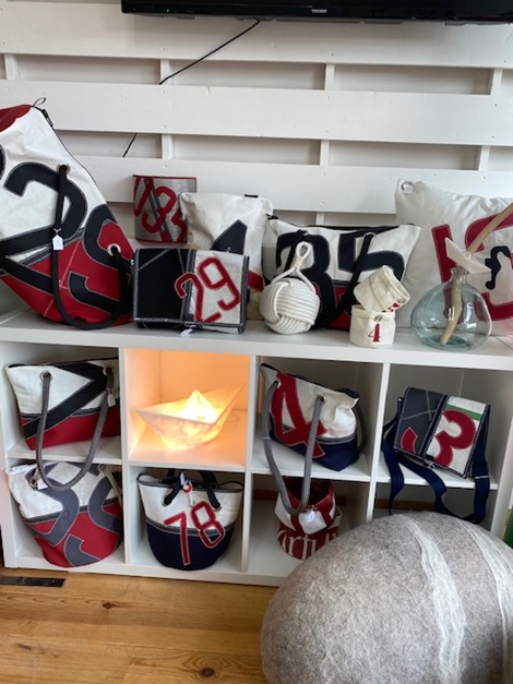 Tous nos articles en voile de bateau recyclée, sont cousus pièce par pièce avec le plus grand soin, dans notre Atelier Boutique à Fouesnant en Bretagne.