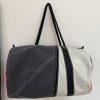 Léger, solide et grande capacité de rangement, voilà les atouts principaux de ce beau sac de sport en toile de voile de bateau recyclée. Un design unique avec sa base de couleur blanche, grise et blanche, chiffre 651 rouge, vous allez adorer faire du sport ! Il est doté de pochettes extérieures sur les deux côtés et de deux anses en gaine polyester (bout de navigation) pour le transport. La voile est vraiment unique et authentique dans ses détails, elle respire les embruns! Le fourreau de latte est d’origine, une vraie pièce unique!