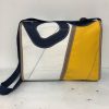 Utile et unique, ce sac besace en voile de bateau est une version originale en toile recyclée. Il va séduire tous les passionnés de nautisme et de funboard. A bandoulière,  avec pochette intérieure et fermeture, il est vraiment très pratique. Cousu pièce par pièce en Bretagne dans notre atelier de Fouesnant,  à partir de voile de bateau, il a un design unique, rare qui plaît aux férues de toutes sortes de navigation en mer. Vous ne trouverez pas deux besaces identiques.