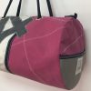 Duo de sacs pour elle et lui, composé d’un sac de sport moyen modèle et d’un sac de sport petit modèle. Léger, et pratique, ce sac sport en voile de bateau recyclée a un design unique. Cousu pièce par pièce dans atelier en Bretagne – Fouesnant, il n’y a qu’un seul exemplaire de ce sac.. Il séduit tous les passionnés de sport nautique et d’activité en bord de mer. Montrez votre différence ! Pour tous les sportifs qui aiment pratiquer leurs activités tout en marquant leur différent. Ici en voile de bateau blanche, toile de taud gris et rose, chiffre 14 gris.