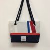 Crée dans notre atelier en Bretagne (Fouesnant), nos sacs sont cousus pièce par pièce. Toile de taud bleu marine et voile blanche, le chiffre 2 est en bleu roi. Les voiles recyclées sont à chaque fois différentes et son design est unique ! Vous préférez une autre couleur, un autre chiffre et vous ne l’avez pas trouvé dans notre boutique sacs en ligne. Il suffit de le commander (aucun frais supplémentaire).