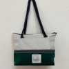 Crée dans notre atelier en Bretagne (Fouesnant), nos sacs sont cousus pièce par pièce. Les voiles recyclées sont à chaque fois différentes et son design est unique ! Ici en voile de bateau recyclée blanche, toile de taud vert foncé, et chiffre 2 bleu marine. Vous préférez une autre couleur, un autre chiffre et vous ne l’avez pas trouvé dans notre boutique sacs en ligne. Il suffit de le commander (aucun frais supplémentaire).
