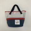 Découvrez notre sac porté main confectionné à partir de voile de bateau recyclée et de taud. Léger et avec ses deux anses courtes il possède une bonne capacité de rangement sans être encombrant.
