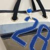 Découvrez notre sac porté main confectionné à partir de voile de bateau recyclée et de taud. Léger et avec ses deux anses courtes il possède une bonne capacité de rangement sans être encombrant.